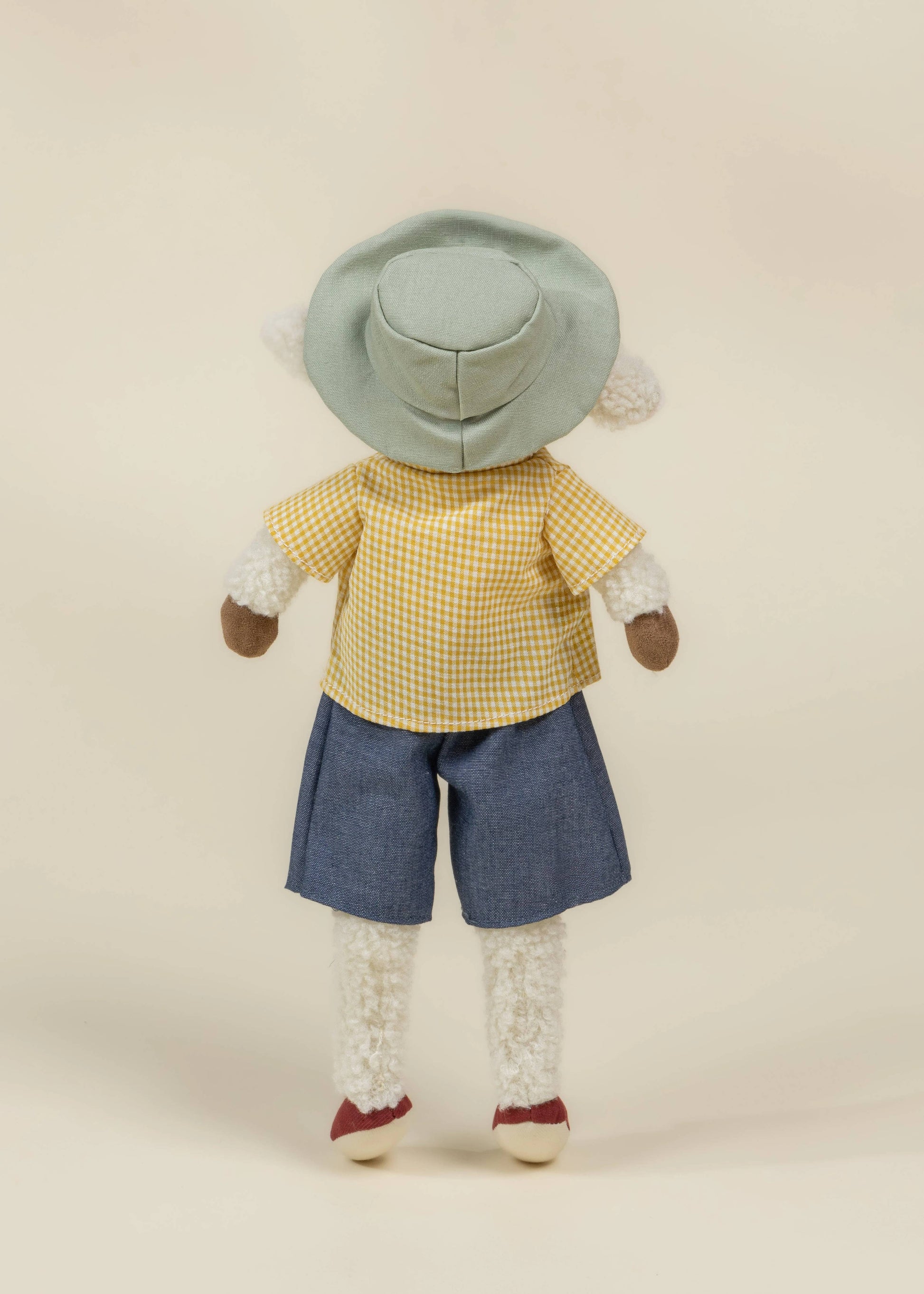 Meet this charming plush lamb, dressed in a soft gingham shirt, denim shorts, and a sweet little beret for an extra touch of personality. With its gentle expression, floppy ears, and cozy textures, this lovable companion is designed to spark little ones’ big imaginations — inviting symbolic play, magical storytelling, and creative adventures.
