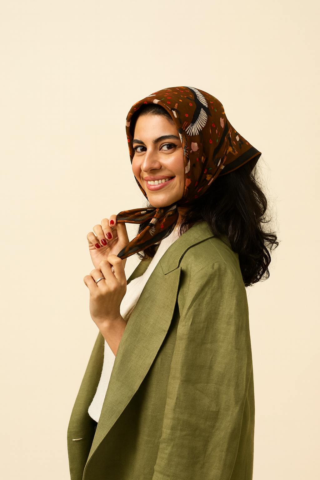 Lightweight and airy with a beautiful, effortless drape, these bandanas are made from a soft blend of cotton and silk—gentle on the skin and easy on the planet. Each piece begins with a hand-drawn illustration and is thoughtfully brought to life with care and craft.
