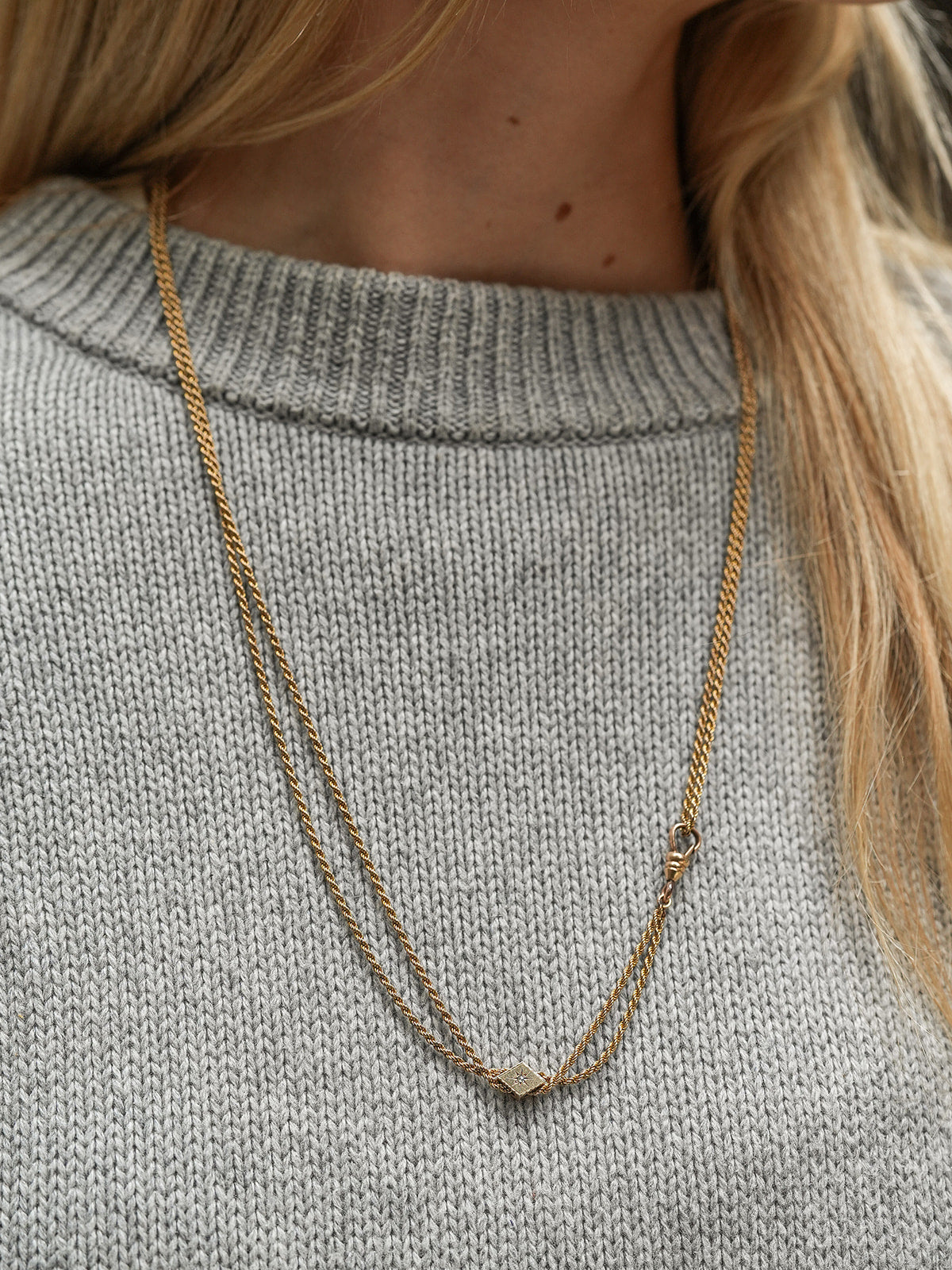 This vintage gold-filled rope chain features an elegant slider mechanism, allowing the length to be easily adjusted for a perfect fit. Its intricate twist design adds subtle texture and shimmer, making it a versatile piece for layering or wearing on its own.